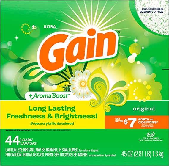 Laundry detergent. Gain ultra. Keeps fantastic freshness in your clothes even after two weeks Original scent. 45 oz.